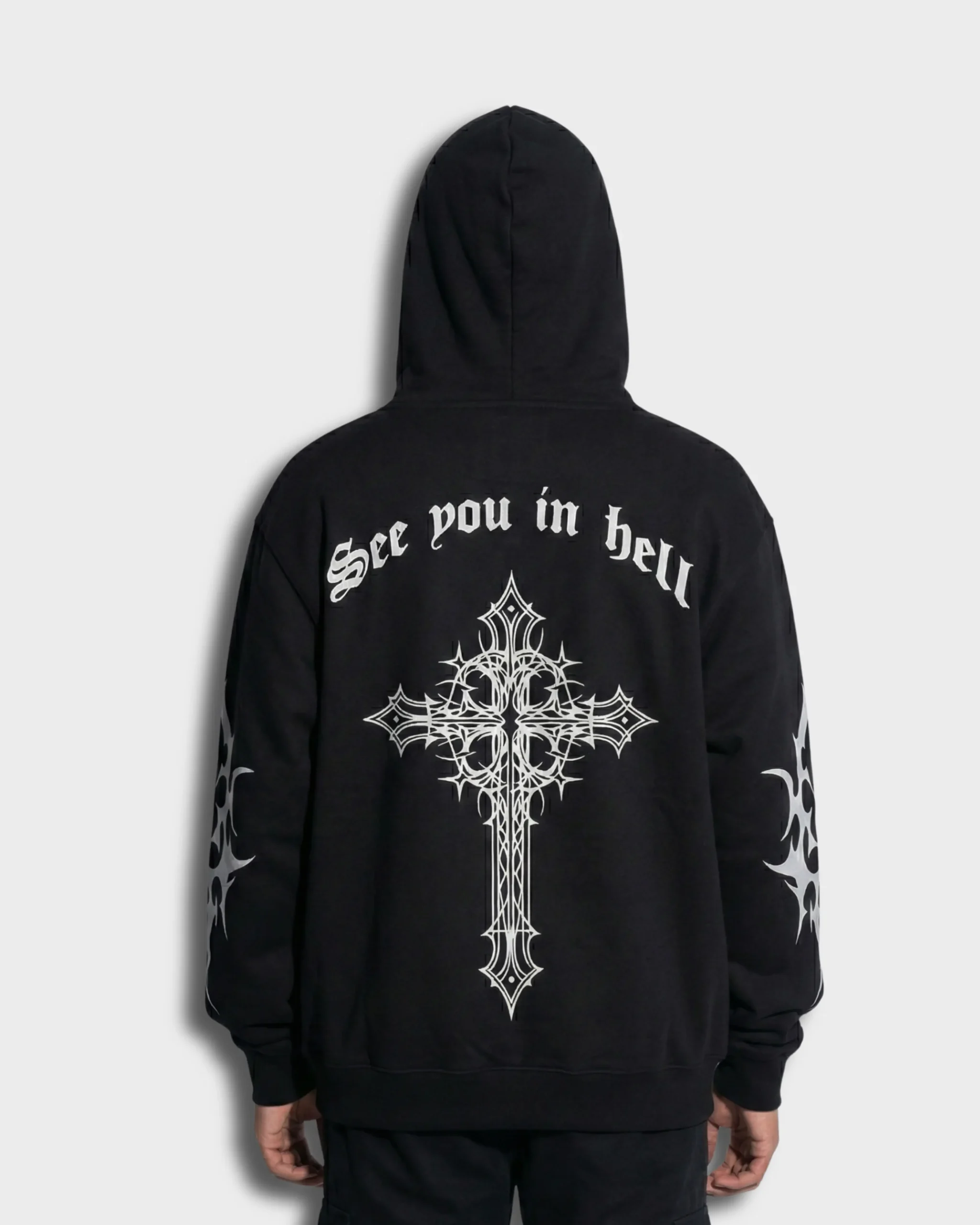 The Cross Graphic Hoodie is a powerful expression of faith, struggle, emotion, and inner strength—designed for those who turn pain into purpose. With its bold gothic cross symbols, dark artistic visuals, and premium heavyweight fabric, this hoodie blends spiritual symbolism with modern streetwear aesthetics.