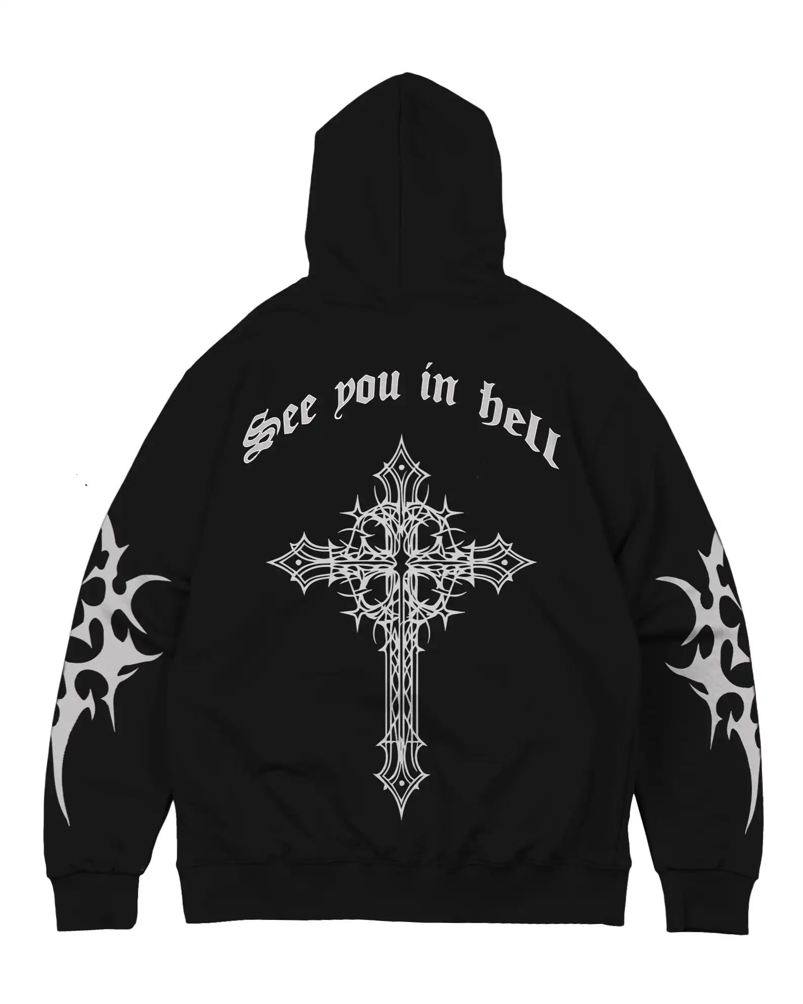 Cross Graphic Hoodie – Divinity in Pain Streetwear